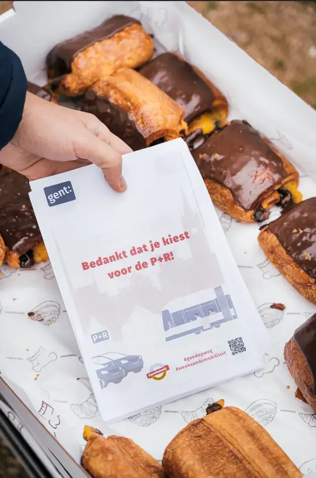 Op de eerste dag van de Week van de Mobiliteit trakteert Stad Gent met koffiekoeken voor de fietsers die zich parkeren in de fietsparking van het Stadskantoor en gebruikers van de P+R Ledeberg.